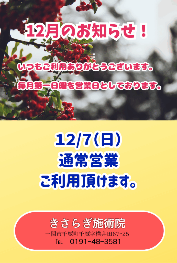 令和7年12月日曜営業