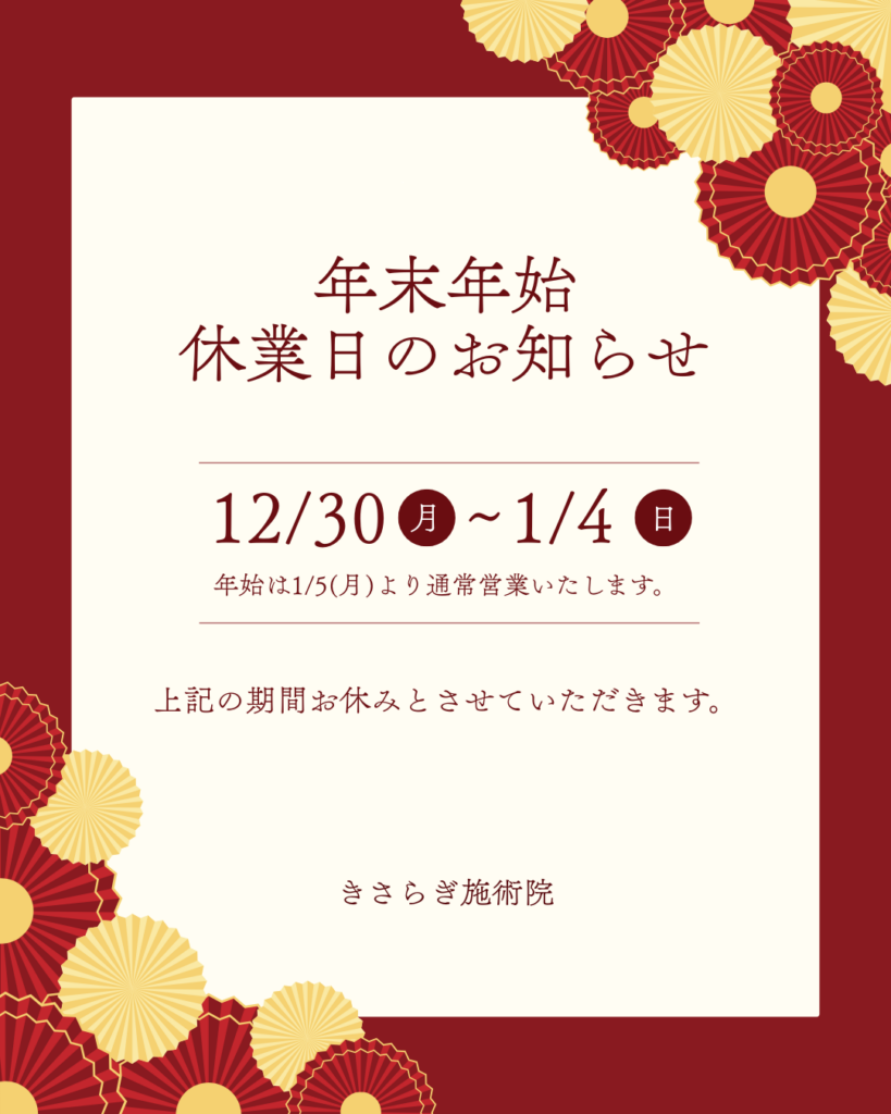 年末年始のお知らせ。